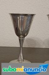 2 copas de vino in miniaturas ,silver plate ,hechas en italia,mide 5x5x11 cm ,cada una pesa 100 gr., estan en buen estado con algun ligero signo normal de desgaste del tiempo,gastos de envio y embalaje a cargo del comprador ,no me hago cargo de eventuales da