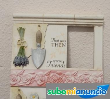 Vendo marco de foto para colgar,amigos especiales,eso fue entonces,esto es ahora ,pesa 456 gr.,en total mide 21x15x2 cm,mientras el espacio para las foto mide 4,5 cm de largo y 8 cm de alto, poco uso,esta en buen estado sim golpes o abolladuras, gastos de envio y embalaje es a cargo del comprador segun tarifas actuales de correo,no me ago cargo de eventuales ds