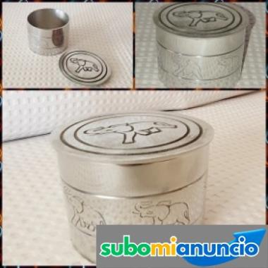Caja plateada con grabados artesanales