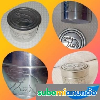 Preciosa caja plateada con grabados de elefantes labrados a mano. Nueva. Venta caja plateada con grabados artesanales de segunda mano