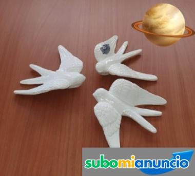 Tres preciosas aves de aproximadamente 14 cm realizadas en porcelana y horneadas en laca brillante . Venta tres preciosas aves realizadas en porcelana de segunda mano