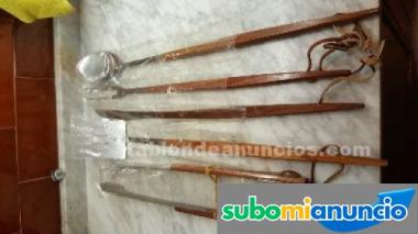 Juego de pinzas, cazos, etc. Para barbacoa o lo que se tercie