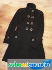 Este original abrigo es ideal para llevarlo tanto abierto, mostrando las solapas, como cerrado totalmente abotonado. Abrigo con doble puente de botones en el delantero y
