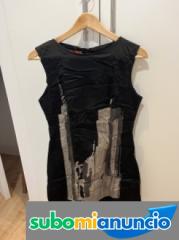Elegante vestido negro con estampado en gris de edificios de Nueva York. Queda precioso puesto, es una talla 2, que equivale a una talla M. Est