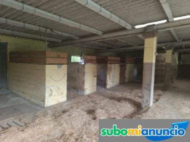 Casa de labranza con terreno y establos para caballos, vacas y pollos.